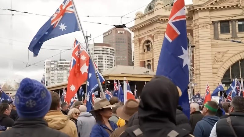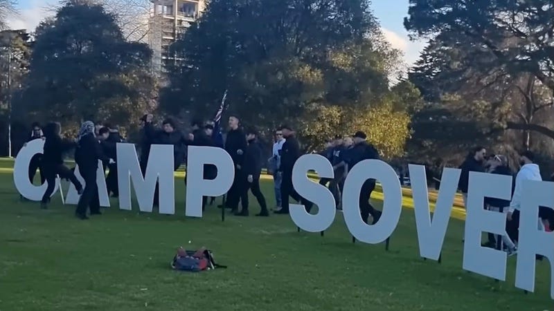 In Melbourne, this extremism led to violence. The neo-Nazi Thomas Sewell led a group of agitators who stormed Camp Sovereignty, the site of an Indigenous protest movement, wielding pipes and branches, tearing down Aboriginal flags, and assaulting women and older members at the site, with authorities now being urged to classify the attack as a hate crime, which it obviously is. Meanwhile, across Australia, at least 21 other people were arrested for similar actions and activities.